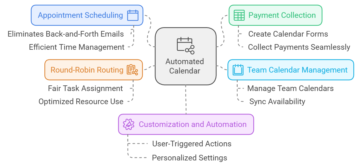 Automated Calendar: Automated calendar that simplifies appointment scheduling, eliminates back-and-forth emails, allows for payment collection, and supports automation based on user behavior.