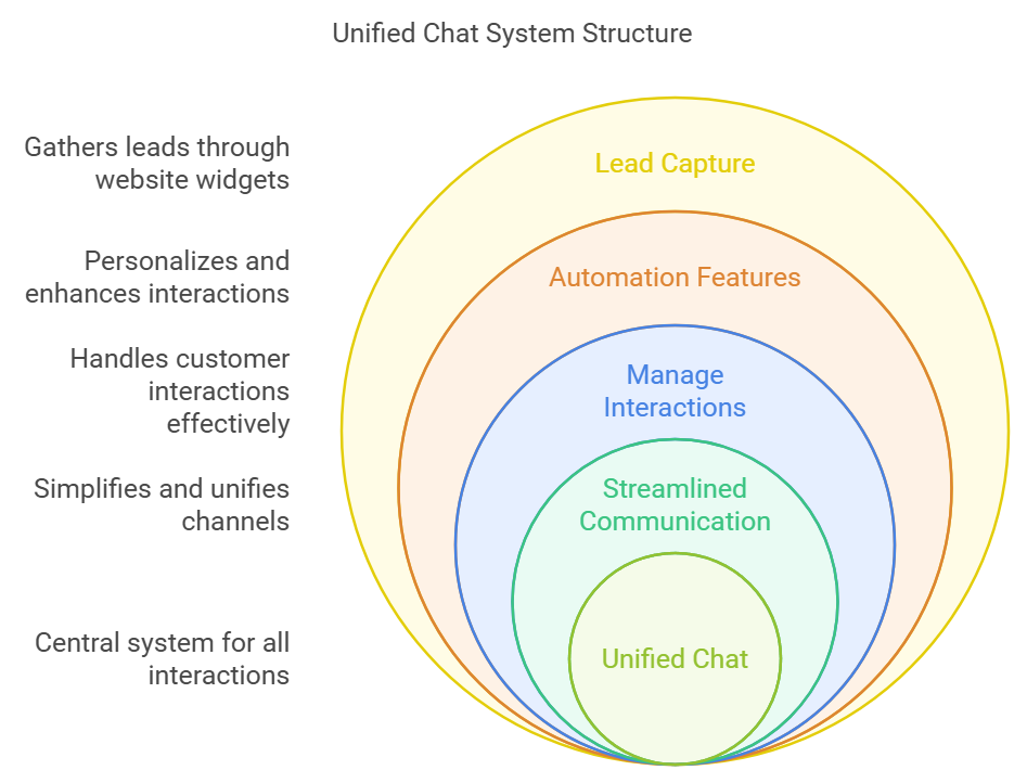 Unified Chat: Feature centralizes customer interactions, captures leads through website chat widgets, and utilizes automation for enhanced and personalized customer engagement.